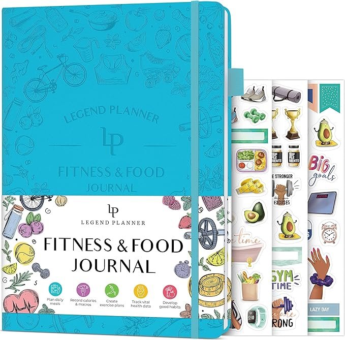 Legend Fitness & Food Journal – Nutrition & Workout Planner with Exercise Calendar & Nutrient Tracker – Gym Training & Diet Log Book for Women & Men – Lasts 3 Months, 7.5”x10” (Aquamarine)
